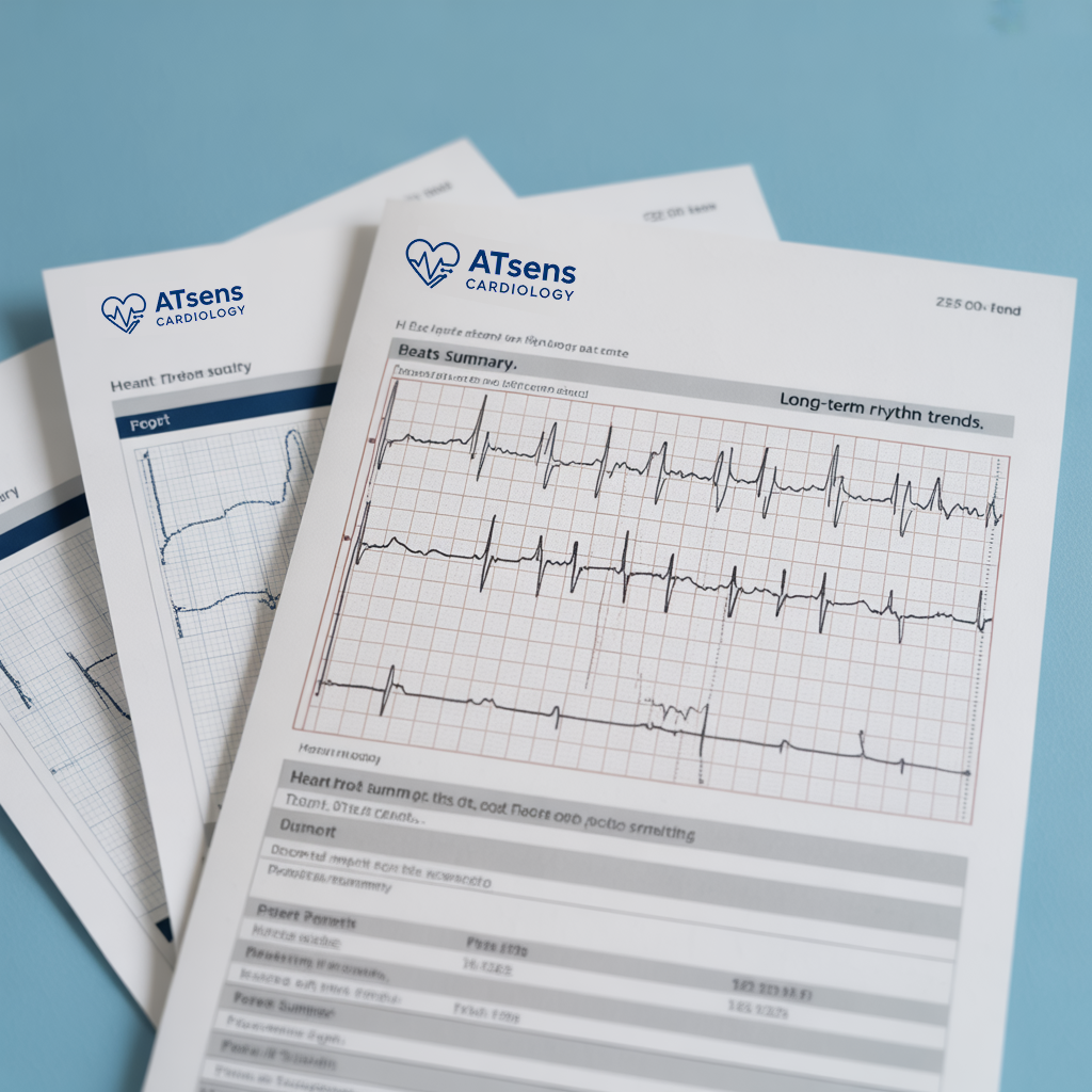 ATSens Cardiology transforms long-term ECG recordings into structured diagnostic reports designed to support confident clinical decision-making.